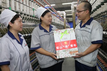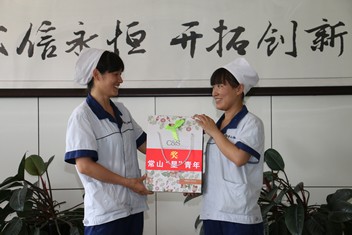 圖1為恒新公司團委邀請常山股份第七屆杰出青年董麗瑞為今年第二季度“星”青年楊翠霞頒獎。
